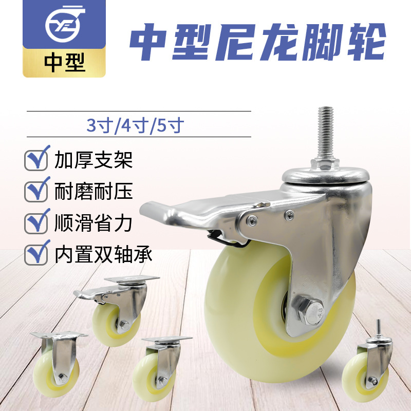 カスタム3インチ45中型白車輪ナイロン車輪ブレーキ付き万能車輪手押し車キャスター台車