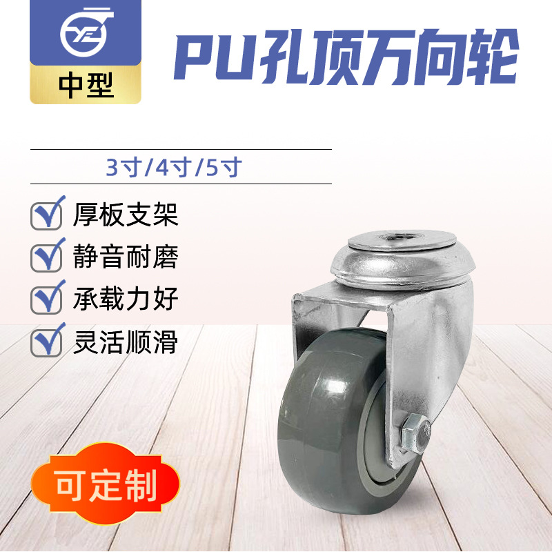 カスタム3インチ4インチ5インチ中型工業トップ穴万向輪ポリウレタン静音輪工場設備キャスター
