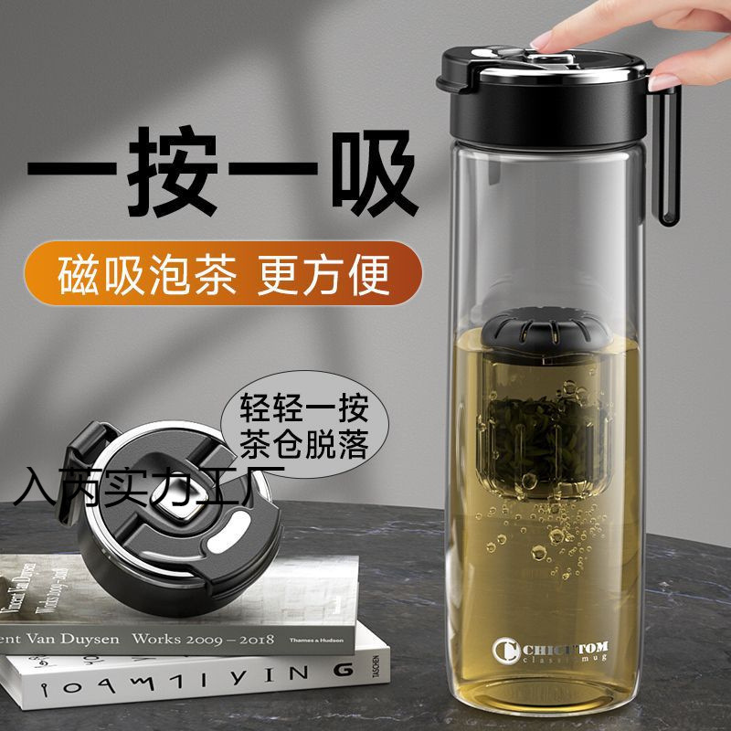 新款高颜值磁弹泡茶杯男士运动茶水分离杯子便携大容量水壶