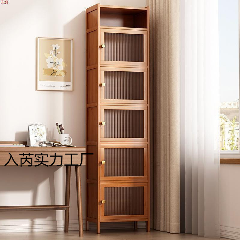 シンプルな本棚防塵深く狭い隙間収納キャビネットキャビネットドア付き本棚床置き家庭用多層本棚