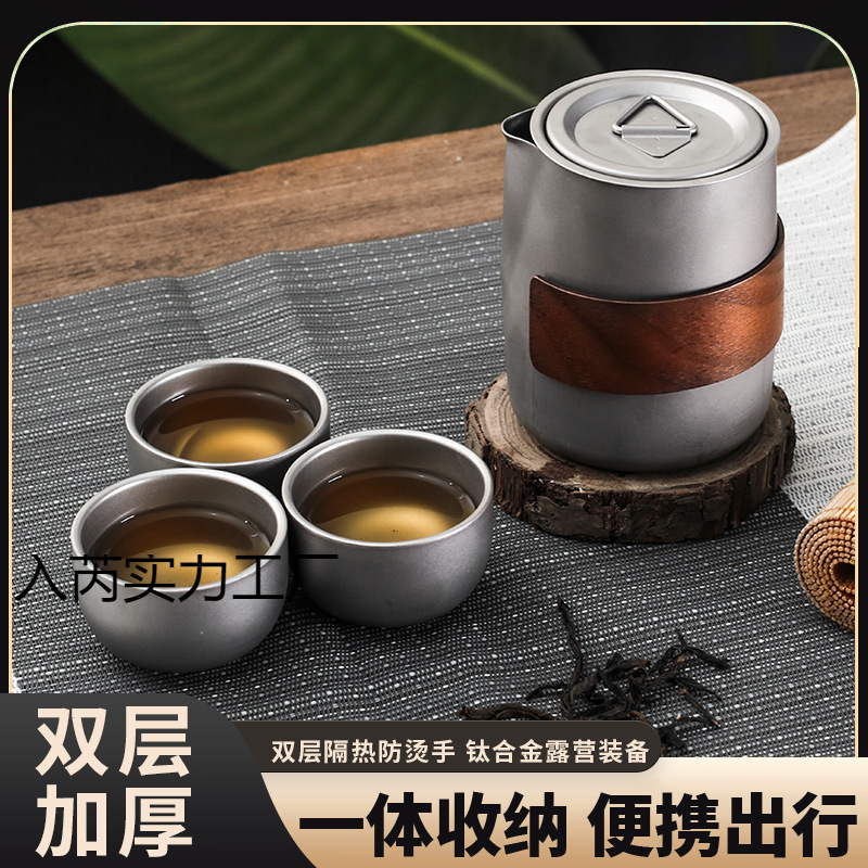 屋外チタン合金ポータブル旅行ティーセットチタン要素ティーカップ軽量ストレージギフト
