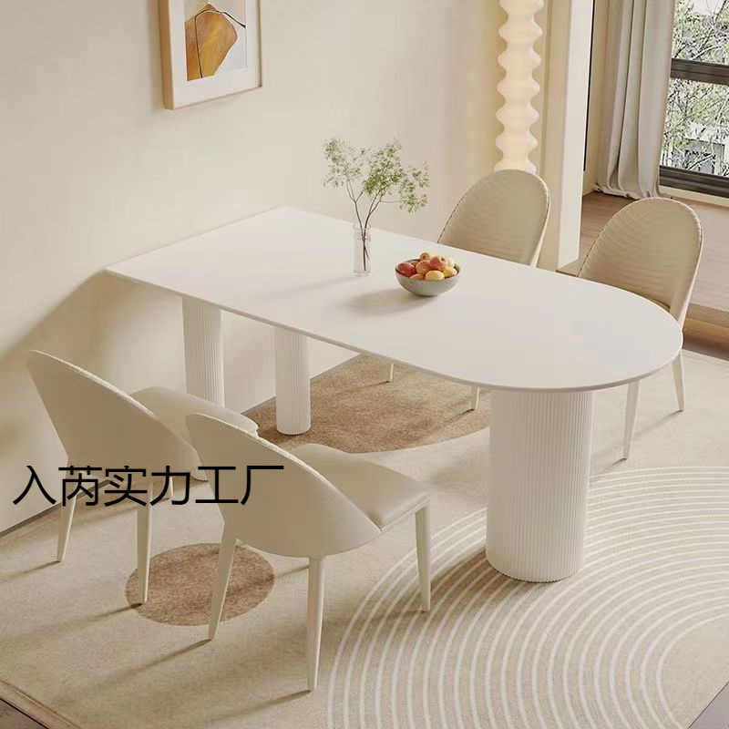 クリームスタイルのスレートダイニングテーブルと椅子の組み合わせ楕円形の家庭用ダイニングテーブルイタリアのミニマリストダイニングテーブル家庭用兼用引き出し式