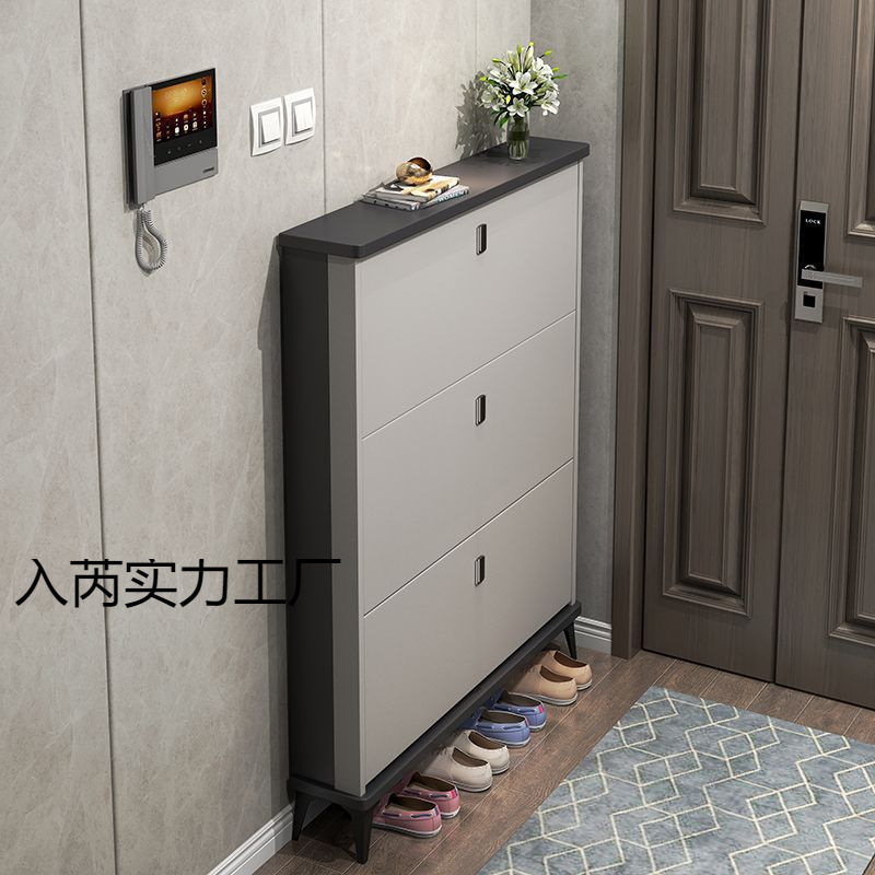 イタリア製超薄型下駄箱、玄関ドア外大容量ダンプ式玄関キャビネット、シンプルモダンな収納靴ラック