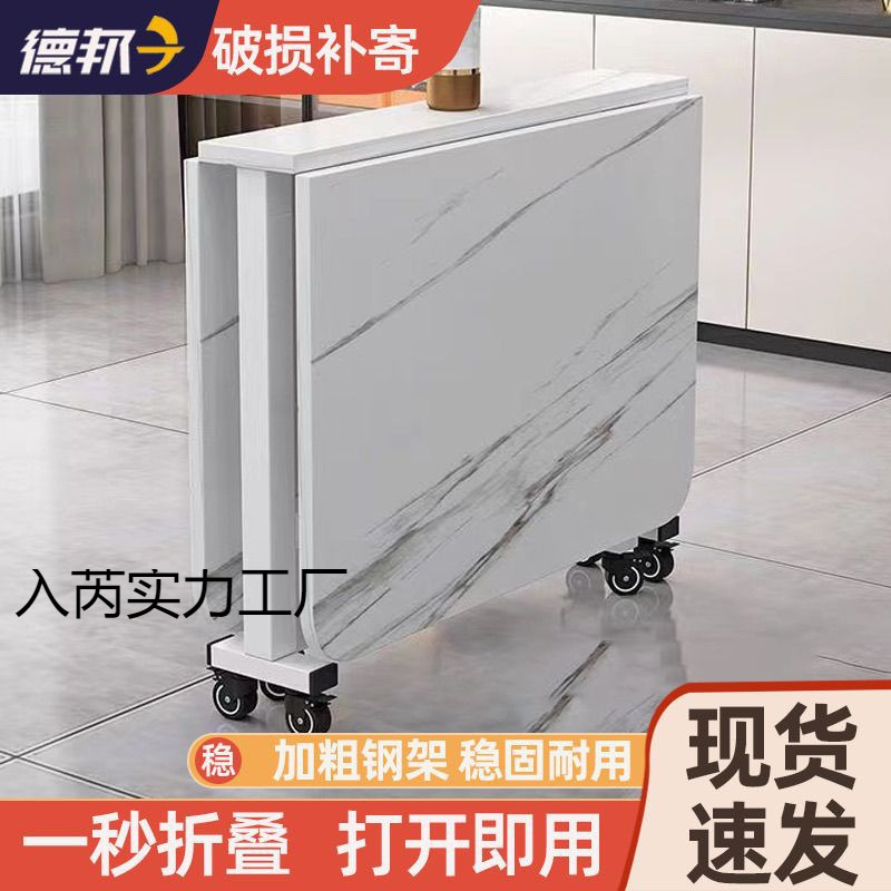 折りたたみダイニングテーブル、取り付け不要、多機能車輪付きテーブル、超薄型折りたたみダイニングテーブル、家庭用屋台テーブル、超耐久性