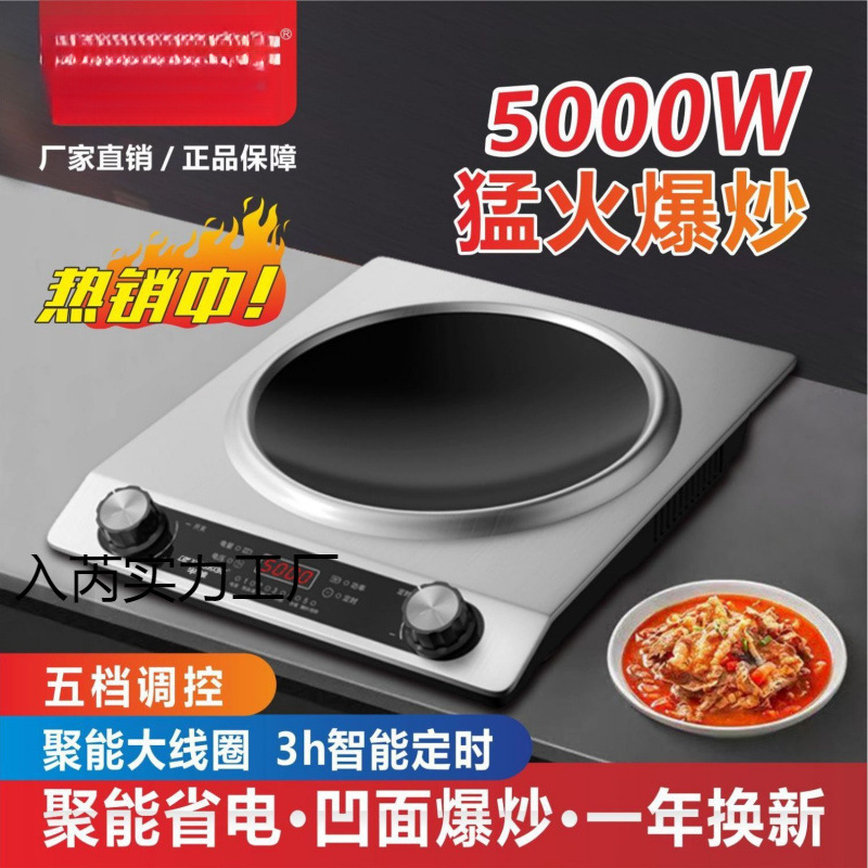 5000W強力炒め電磁調理器、家庭用食堂レンタル専用防水省電力一体型電磁調理器