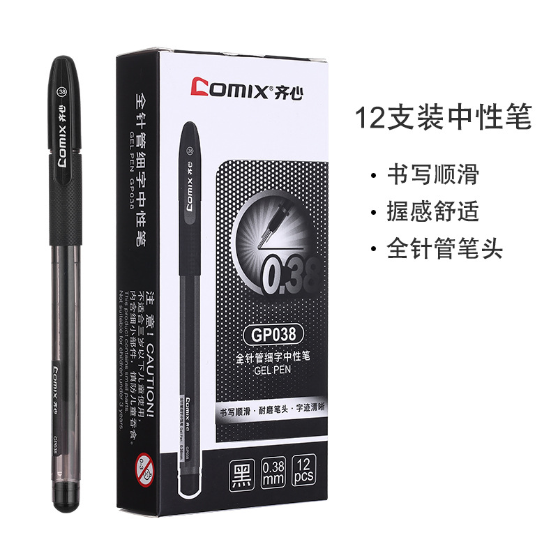 Qixin フルニードル細字ゲルペン卸売 0.38 ミリメートル財務会計黒水ペン 12 個/箱 GP038