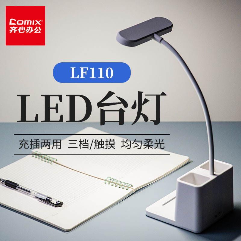 齐心台灯笔筒护眼充电LED台灯学生宿舍学习阅读灯收纳支架台灯