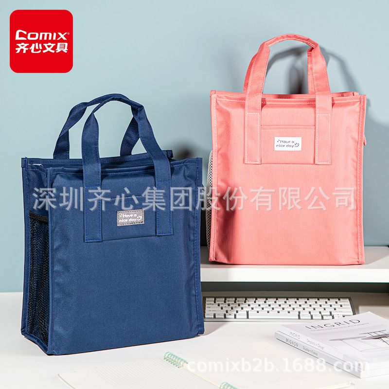 齐心立体手提补习袋帆布手提袋大容量装书神器小学生拎书袋拉链款