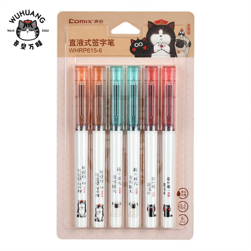 Qixin WHRP615-6 ウー・ホン・ワン・シュイ ストレート液体サインペン 6本パック 弾丸 0.5mm ブラック