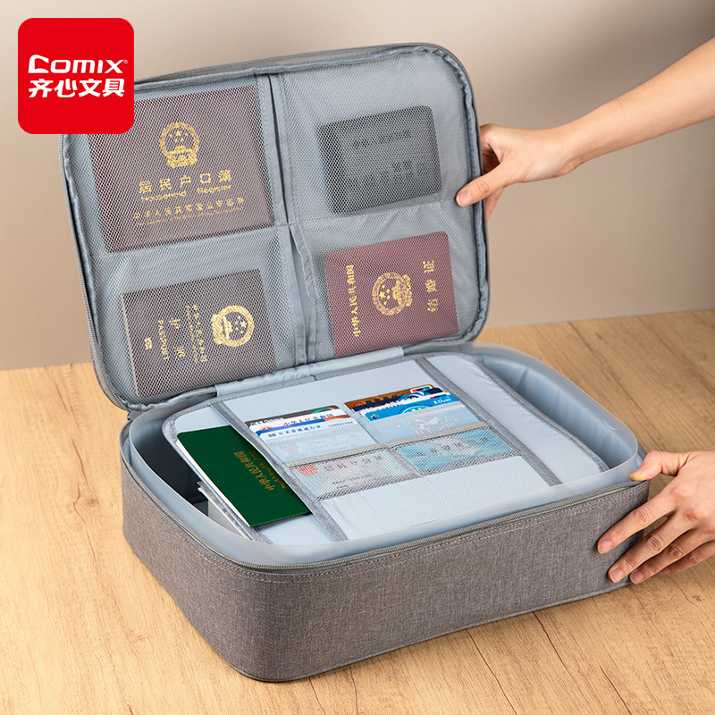 齐心手提收纳包多功能便携旅游大容量重要证书执照印章证件文件