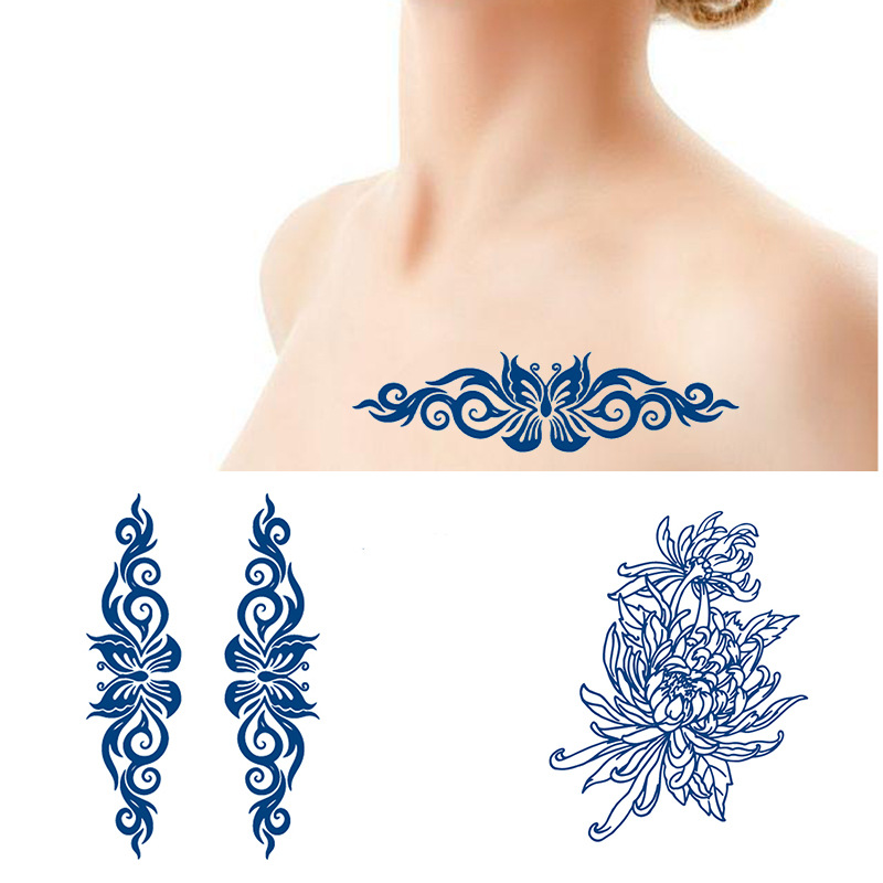 小さな花のタトゥーにバラの花のタトゥーを貼って防水のタトゥーを貼って蝶の花のタトゥーを貼ってカスタマイズすることができます
