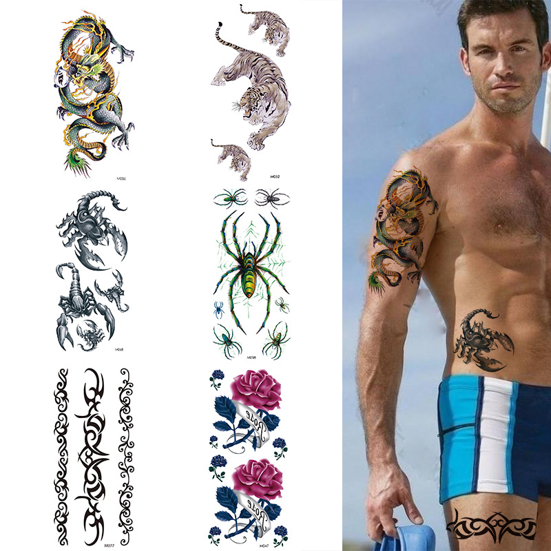 タトゥーは小動物の花のトーテムの紋章を貼ってトラのサソリのタカの竜の紋章を貼って防水の刺青のシールを貼ります。