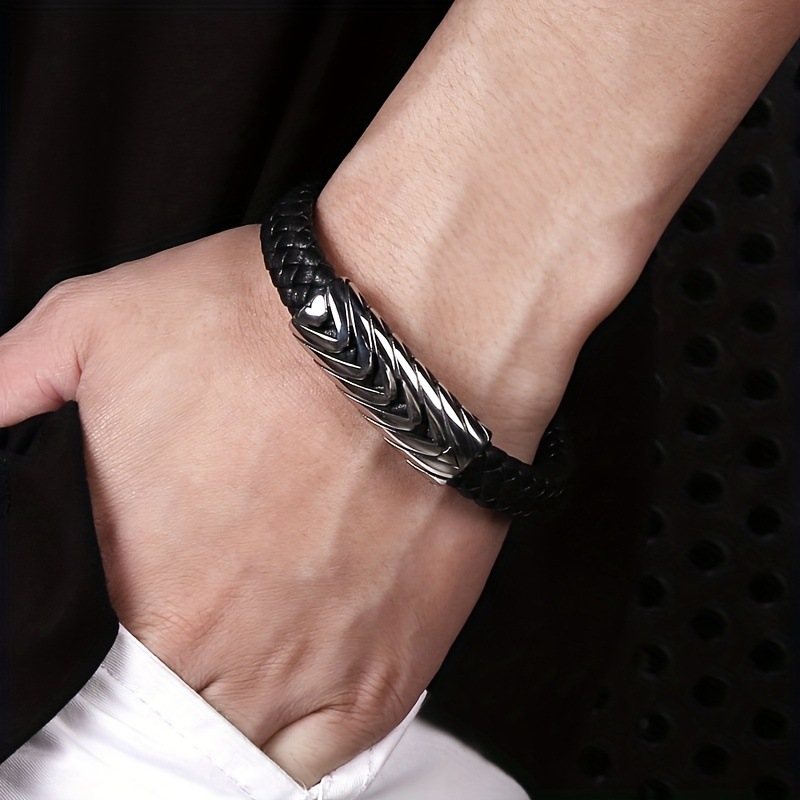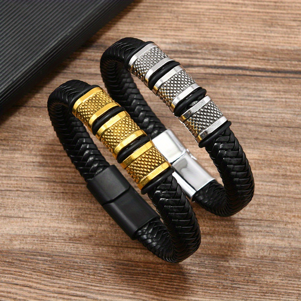 レトロファッションマグネットバックルブレスレットヨーロッパとアメリカの国境を越えた新しい織り模造革ブレスレット絶妙なジュエリーギフト男性用
