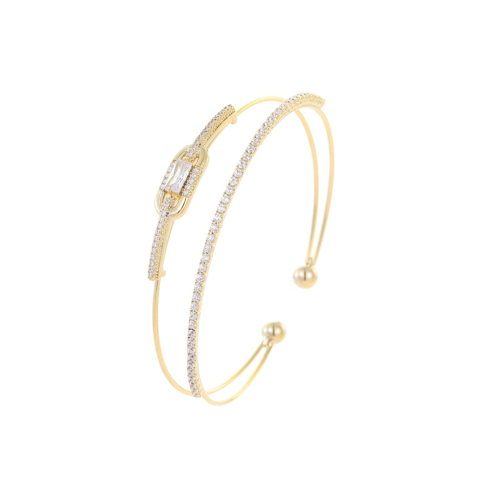 ヨーロッパとアメリカのライトラグジュアリースタイルの金メッキブレスレットスクエアひょうたん二層オープンブレスレットニッチ気質ハイエンドジュエリー女性用
