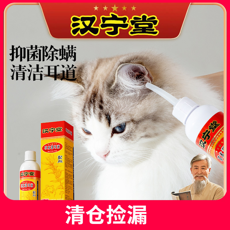 ペットの耳たぶの犬の猫は耳の道を洗って清潔にします。