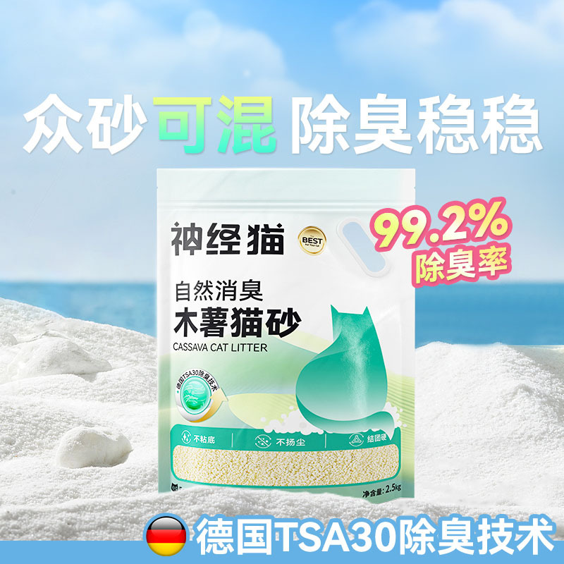 神経猫粟混合猫砂豆腐砂消臭低塵瞬吸秒結団清潔猫砂30斤実恵装