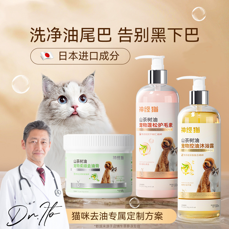 猫はクリームに行きます。犬のペットは洗濯セットをします。