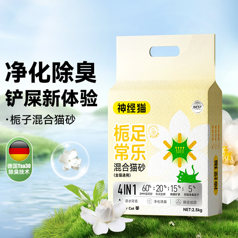 猫砂消臭結団クチナシ花三重混合猫砂四合一強力吸水混合砂清潔猫用品