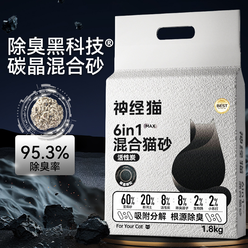 送料無料 ニューロキャット 6in1 混合猫砂 豆腐砂 消臭活性炭猫砂 猫ハウス 卸売 在庫あり 2.5kg