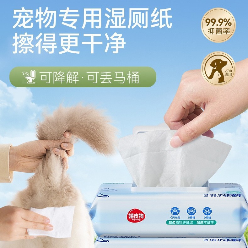ヒッピーの犬の濡れたトイレットペーパー40はペット専用のウェットティッシュを吸います。