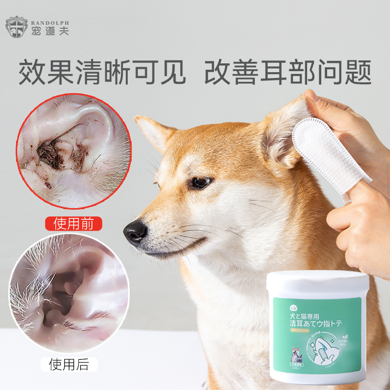 ペットの清潔な耳の指は犬の耳垢を取り除きます。