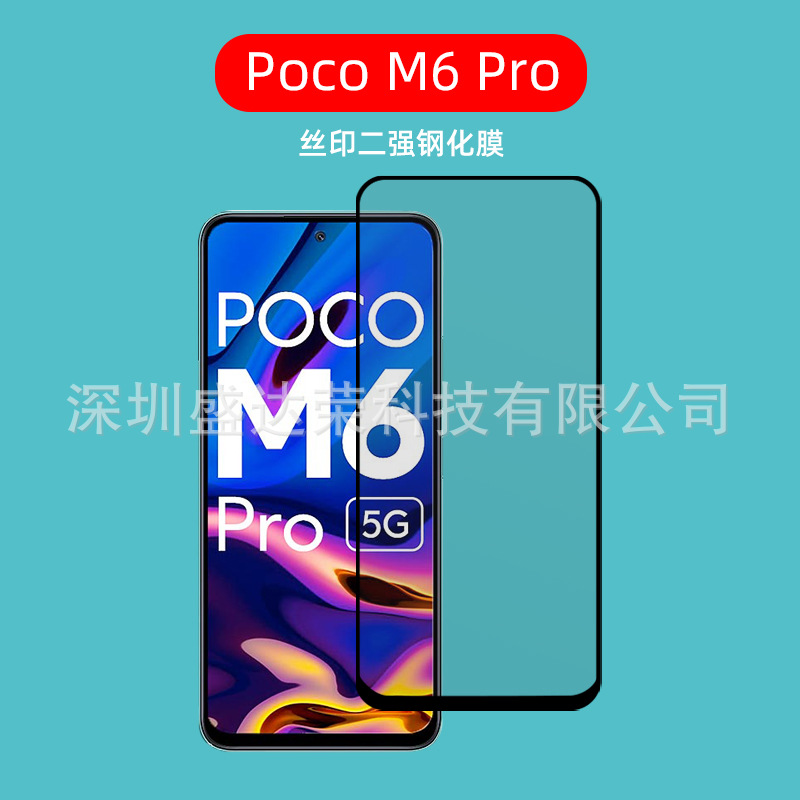 適用小米POCO m 6 Pro強化膜シルク印刷二強ガラス膜小米poco m 6 Proガラス膜