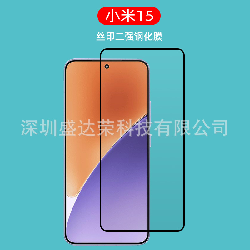 小米15シルク印刷強化膜小米15フィルムガラス膜黒色小米15保護眼紫光全画面に適用