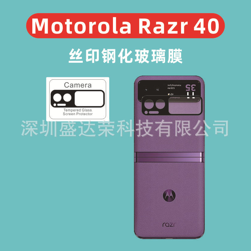 Moto razr40対応シルク印刷レンズフィルムガラスフィルムモトローラmoto razr40レンズフィルムブラック