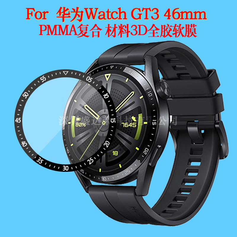 華為watch gt3 46mm強化膜gt3 46紫光複合材料pmma全ゴムマスクを適用する