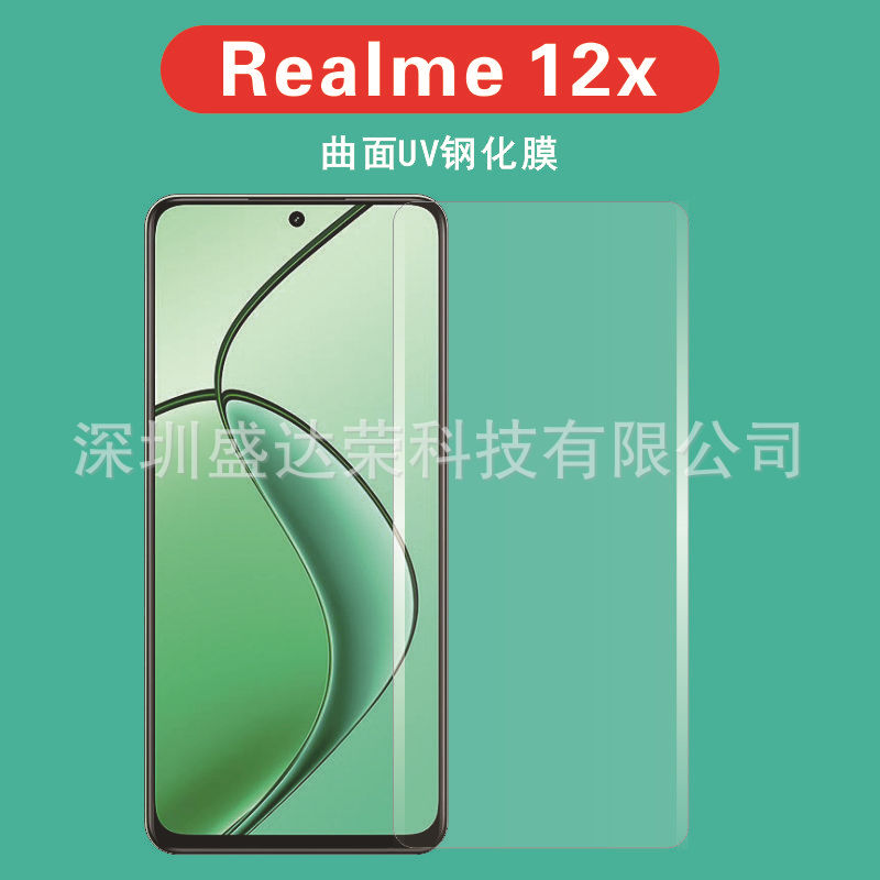 Realme 12x強化膜サーフェスエッジゴム膜realme 12xガラスuv覗き見防止真我12x