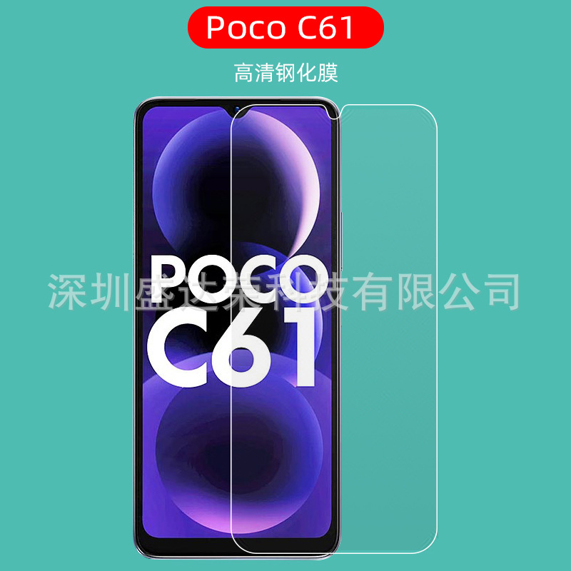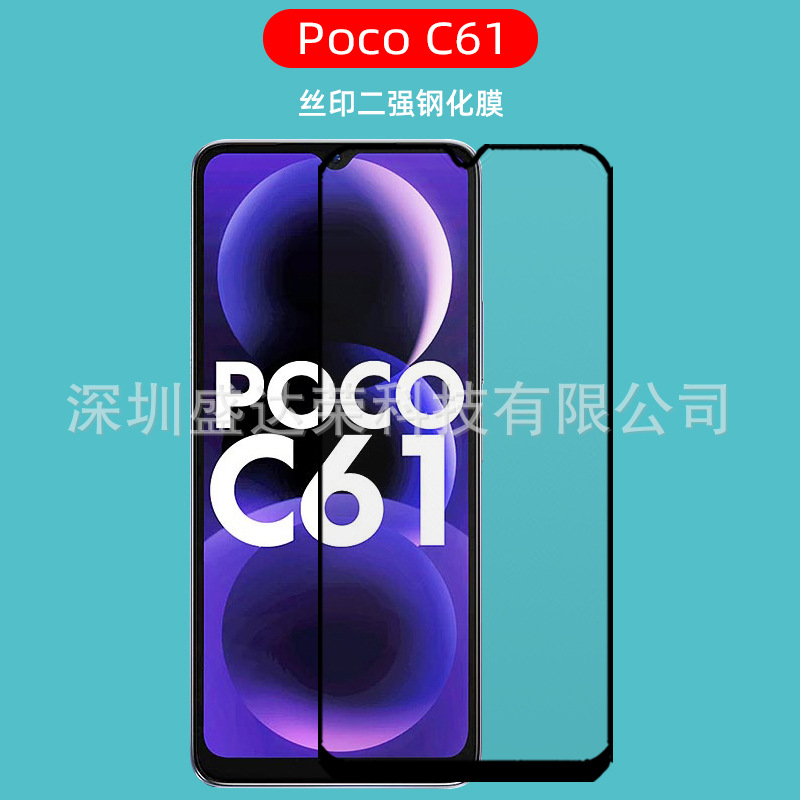 適用poco c61強化膜シルク印刷二強小米poco c61ガラス膜黒色全ゴムpoco c61
