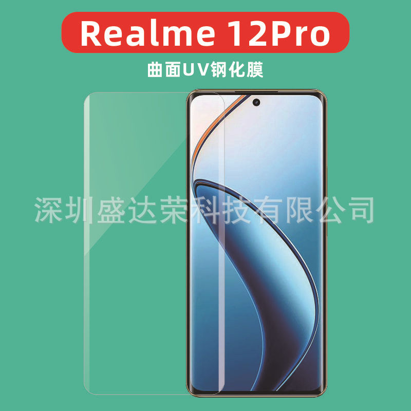 Realme 12 pro強化膜サイドゴム黒色ガラス膜真我12 pro + 強化膜uvに適用