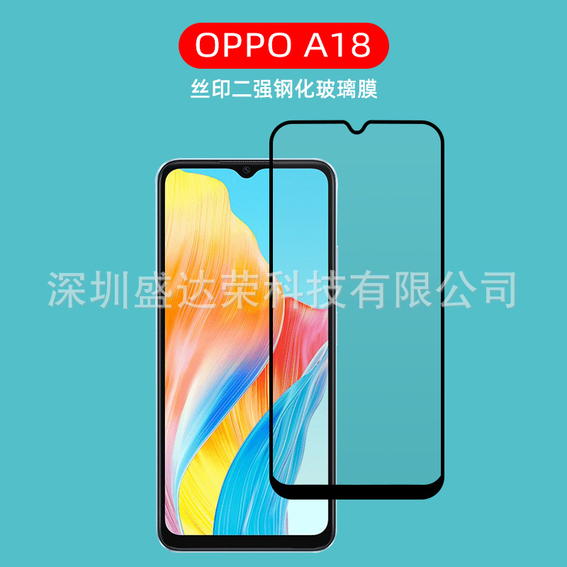 Oppo a18強化膜シルク印刷二強ガラス膜oppo a18強化膜黒色全ゴム強化膜を適用する