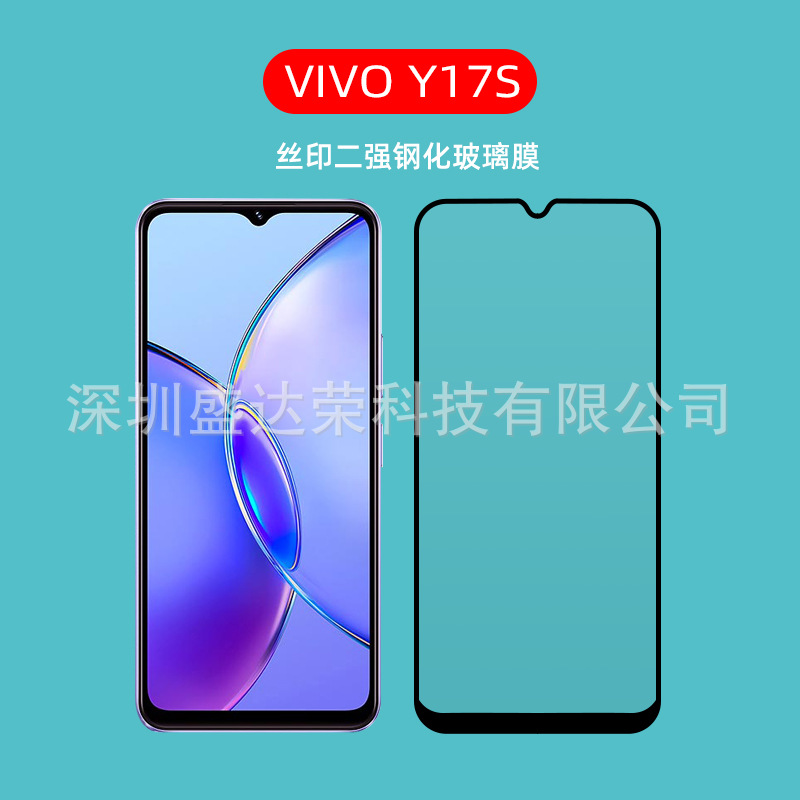 Vivo y 17sシルク印刷強化膜全ゴム黒色vivo y 17sガラス膜高精細シルク印刷膜に適用します。