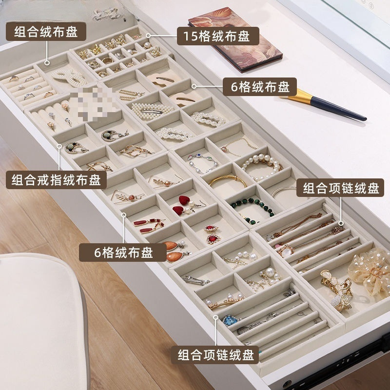 代発ジュエリー引き出し収納仕切り板にベルベットのトレーの棚の中に入っているイヤリングの指輪のネックレス箱