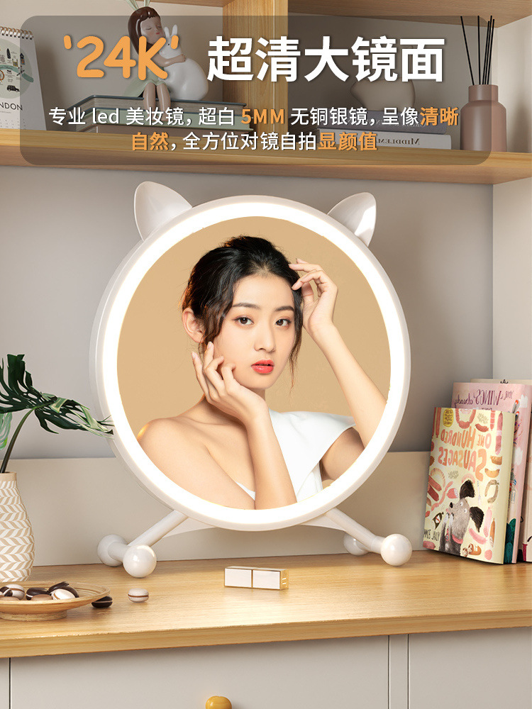 家庭用スマートled化粧鏡ランプ付きデスクトップデスクトップ化粧鏡女子寝室化粧台鏡美化粧鏡