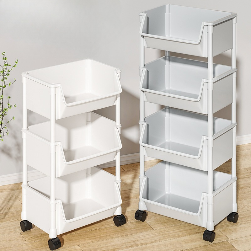 新商品の本棚が床に落ちています。簡易家庭用子供用の輪付き多層ロッカーがあります。