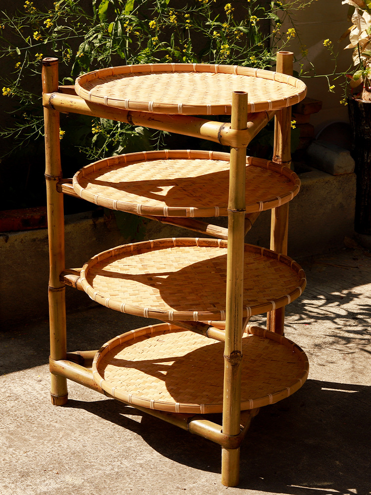 手作り竹棚竹編み物棚竹製品箕鍋棚多層楠竹干し茶干し棚竹三脚棚