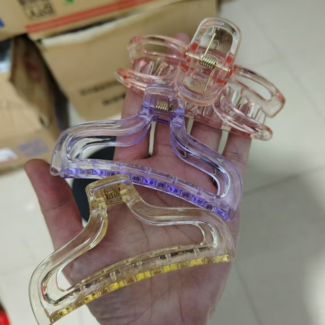 国境を越えたアマゾンの新しいヘアピンアマゾンの大きなグリップゼリーの透明なクリップ気質のヘアピン