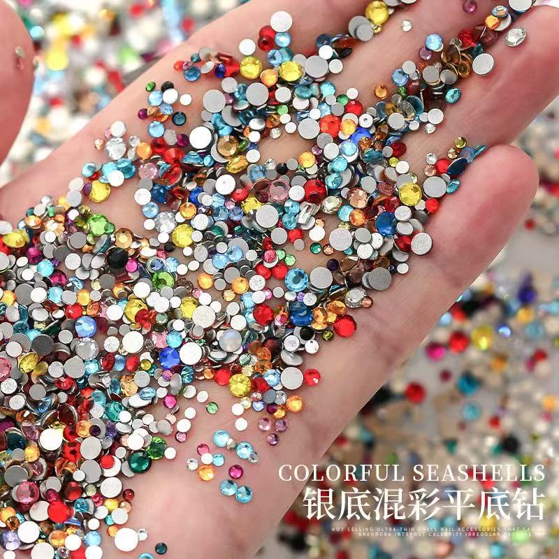 キラキラネイルアクセサリーのカラーの平底の小さい丸いドリルの大きさは水晶のガラスのドリルの小さいサルを混ぜて同じタイプの爪のドリルです。