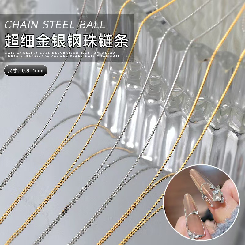 日本のネイルチェーンの金銀の小さい鋼の玉の細いチェーンネットの赤い爆発の金属のアクセサリーの爪はネイルアクセサリーを飾ります。