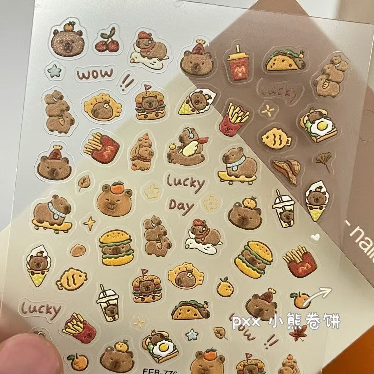 赤い本の同じカピバラネイルシールかわいいコップにペンを貼ってカメラの携帯電話を貼ってください