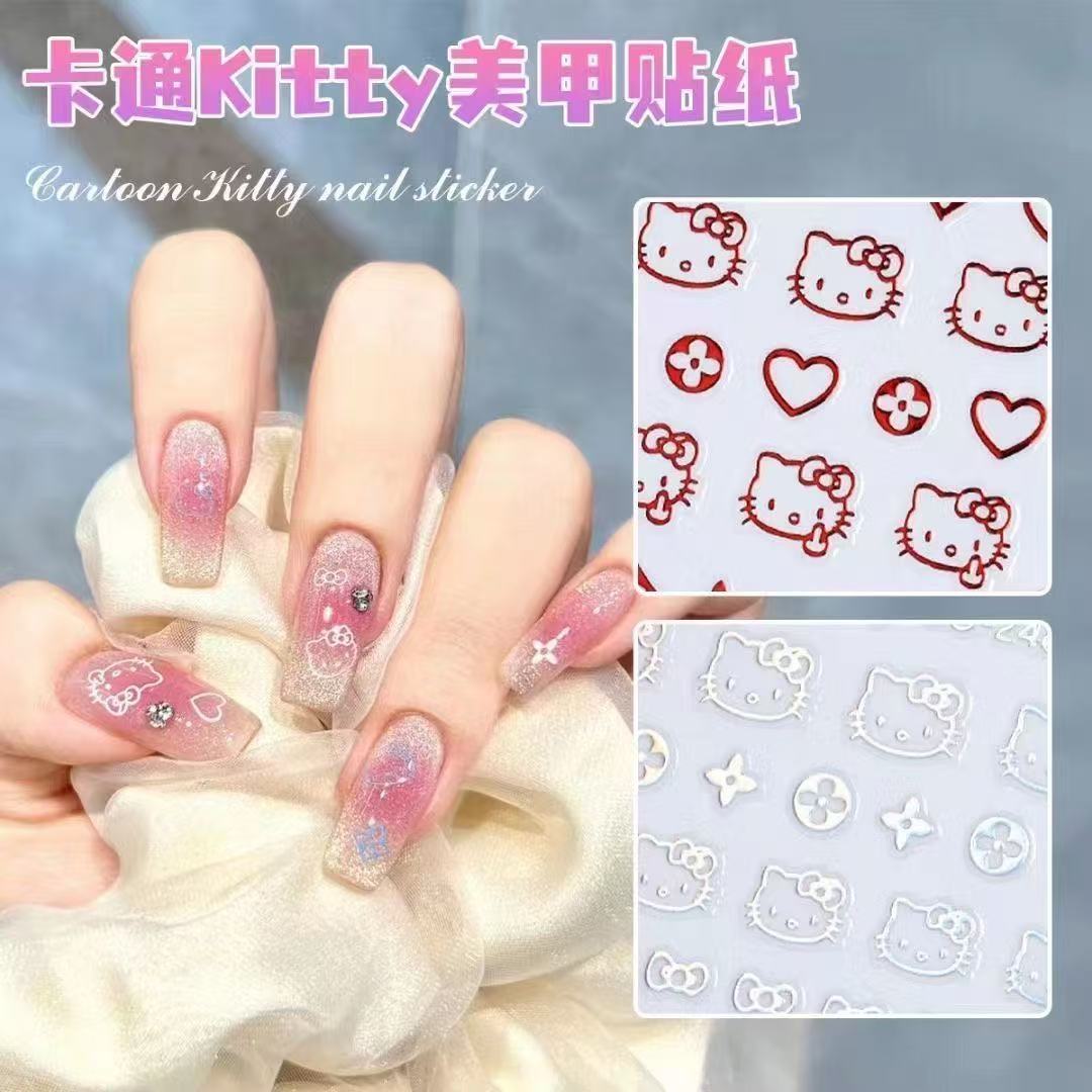 ピンクスカートハローキティネイルステッカーins乙女心5dレリーフ立体ハローキティ水カップカメラdiyステッカー