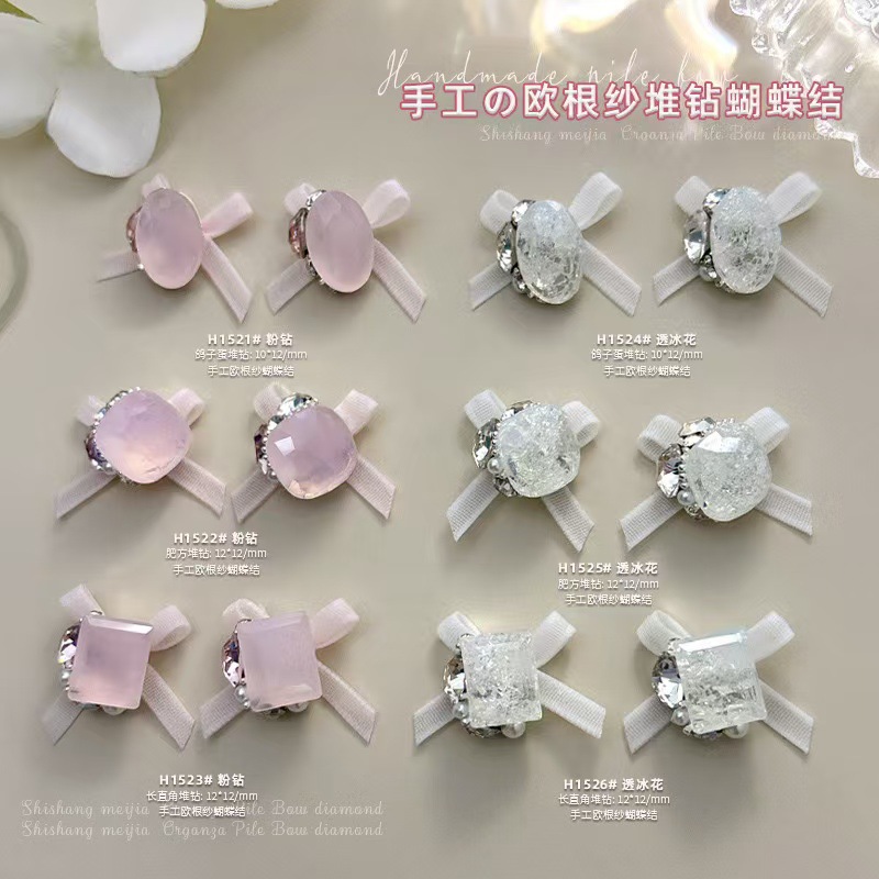 欧根紗の蝶結びの氷のひびの完成品のネイルアートの積み重ねのボールの白い氷の花の合金の積み重ねのドリルの美甲のドリルの装飾品