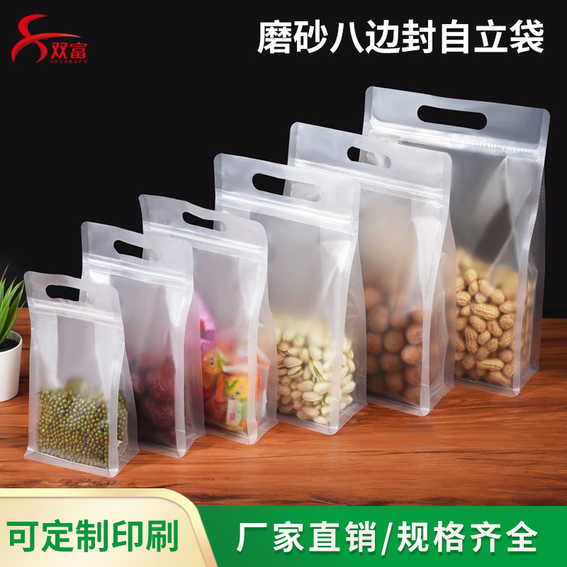 フロスト透明手提げ八辺封自立自封袋ドライフルーツキャンディー間食品密封ポケットプラスチック包装袋
