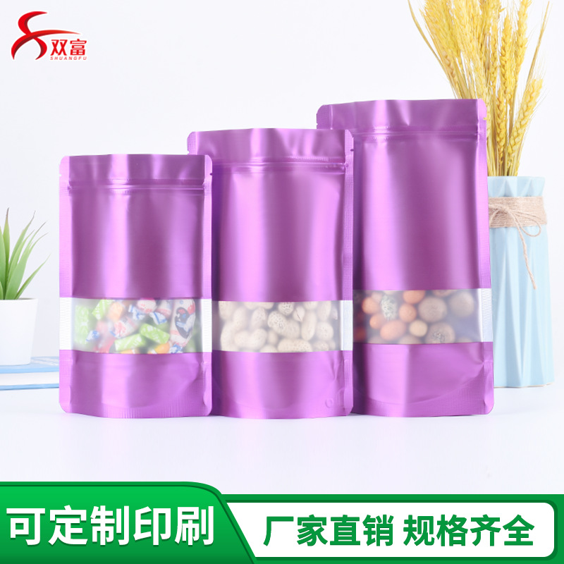 紫色の窓開けアルミ箔袋カラーアルミメッキ自立袋大豆ナッツ雑穀食品自封口プラスチック包装袋