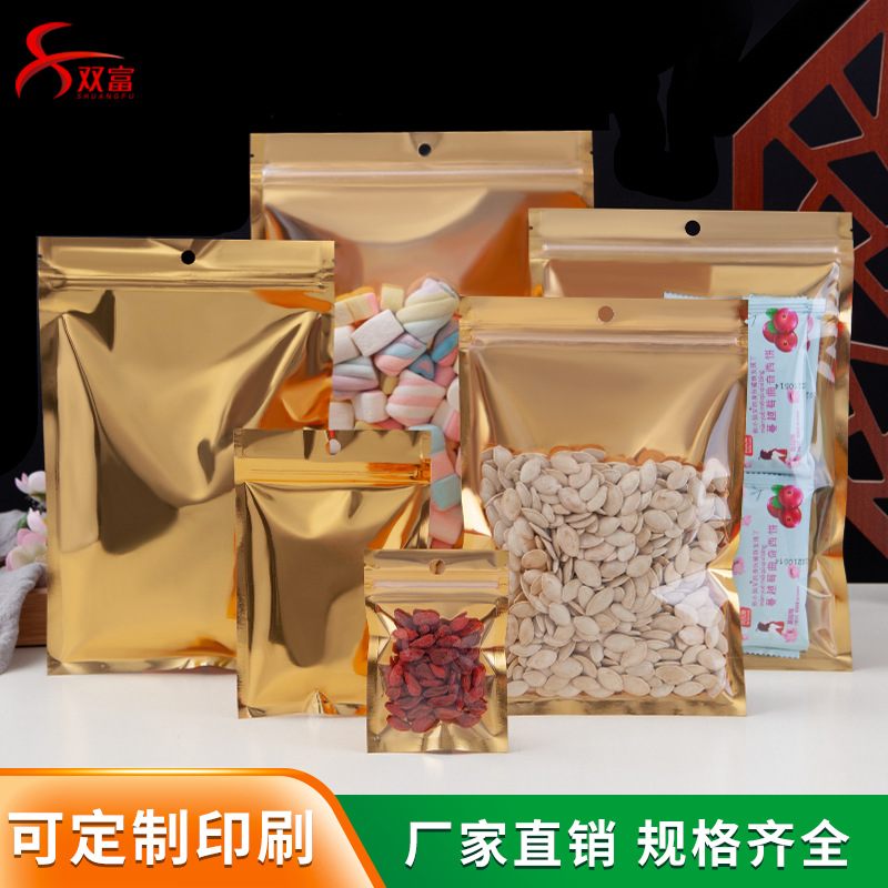 両面金陰陽アルミ箔自封袋半透明間食品分装密封ポケットギフトプラスチック包装袋