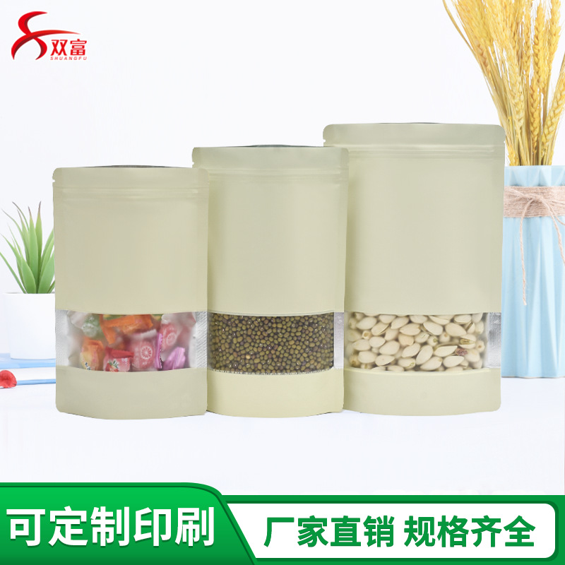 ベージュアルミ箔自封袋フロスト開窓カラー自立密封袋ドライフルーツ特産間食プラスチック包装袋