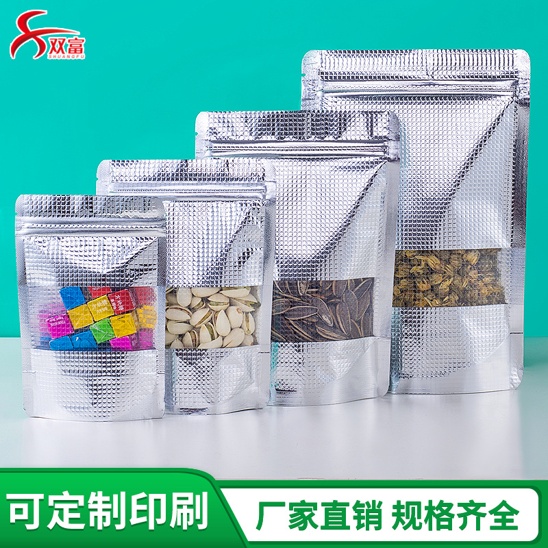 エンボスアルミ箔窓開け自立自封袋筋目アルミ箔袋ドライフルーツ食品包装袋メーカー卸売り100個