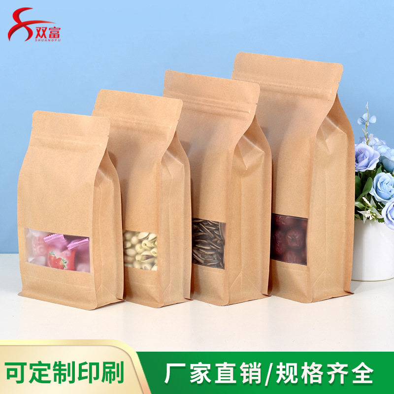 クラフト紙開窓八辺封自立自封袋3d立体ナツメレジャー食品ドライフルーツ包装袋50個価格